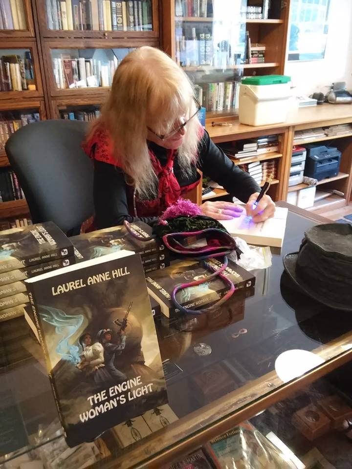 SPIRITS MEET STEAMPUNK: Laurel Anne Hill launches her new novel, The Engine Woman’s Light (Sand Hill Review Press), at Borderlands Books, February 4, 2017, 3 pm.